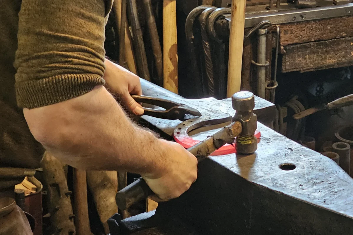 Forgeage d’un fer à cheval à la forge de La Tzintre, Charmey (FR). © Margrit und Peter Üelinger