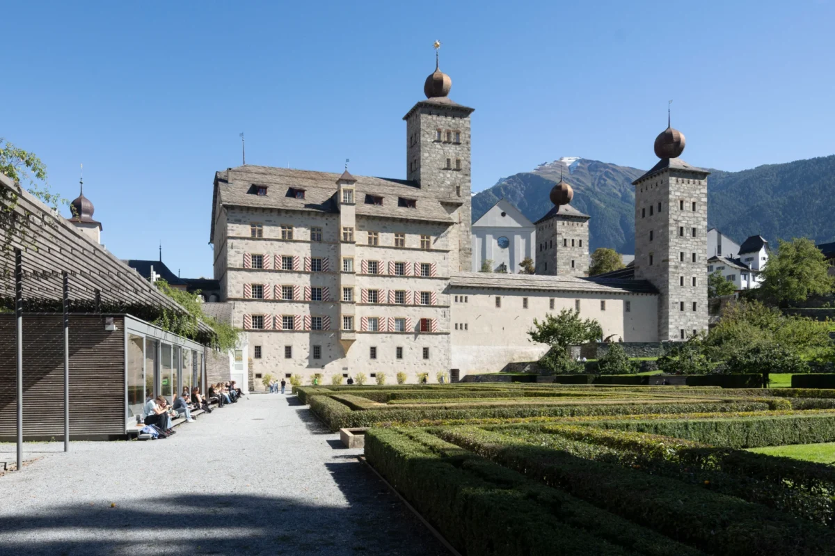 Le pavillon du jardin du château Stockalper illustre de manière exemplaire comment bâtiments historiques et architecture contemporaine peuvent dialoguer harmonieusement. © Gaëtan Bally / Keystone / Patrimoine Suisse