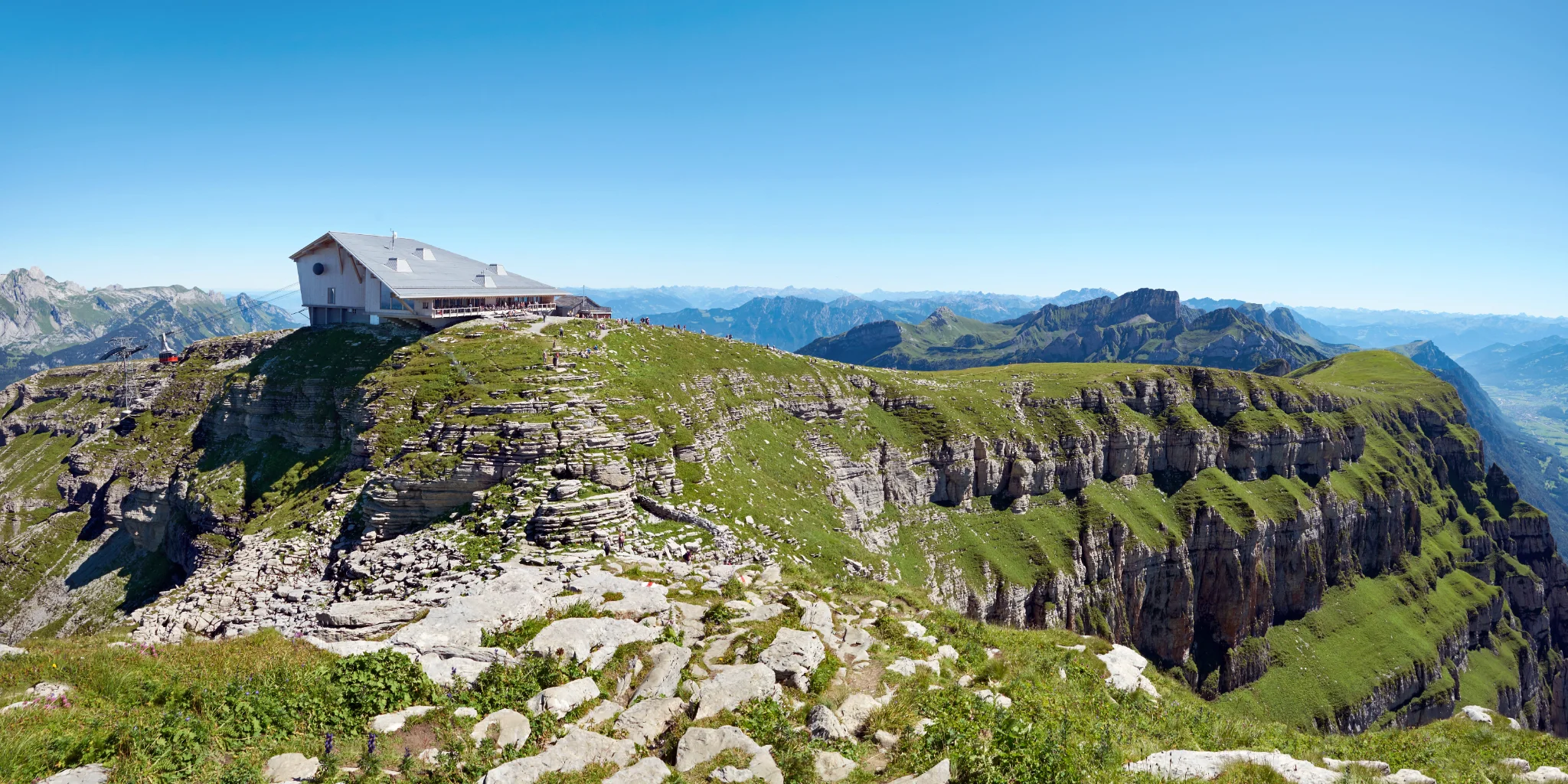 Tourismusinfrastrukturlandschaft Chäserrugg: Bauen für den Tourismus im Toggenburg – hier das Gipfelgebäude auf dem Chäserrugg, entworfen und gebaut vom Architekturbüro Herzog & de Meuron. © Toggenburg Bergbahnen AG, Corinne Cuendet
