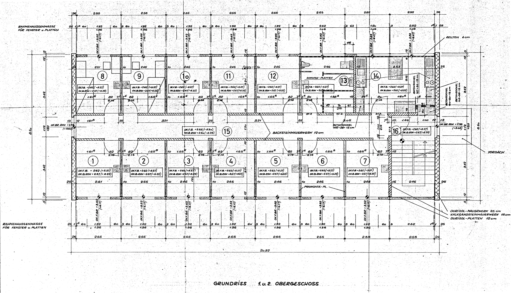 Die Häuser wurden als Ständerbauten mit Stahlskelett und Durisol-Aussenwandplatten konzipiert. Durisol wurde aus chemisch mineralisierten Holzfasern unter Zusatz von Zement als Bindemittel hergestellt. Die kurze Bauzeit sowie die Wiederverwendbarkeit der Bauteile galten als wesentliche Vorteile dieser Bauweise. Die vier Häuser waren ursprünglich als Provisorium gedacht und nur für zehn Jahre bewilligt. Geplant war, sie nach der Fertigstellung des Rangierbahnhofs Limmattal dorthin zu verlegen. Gemäss zeitgenössischen Berichten konnten lediglich die Bodenkonstruktion und die inneren Tragwände nicht wiederverwendet werden – nicht, weil es technisch unmöglich gewesen wäre, sondern weil sie von der Baupolizei als Massivbau vorgeschrieben wurden.
